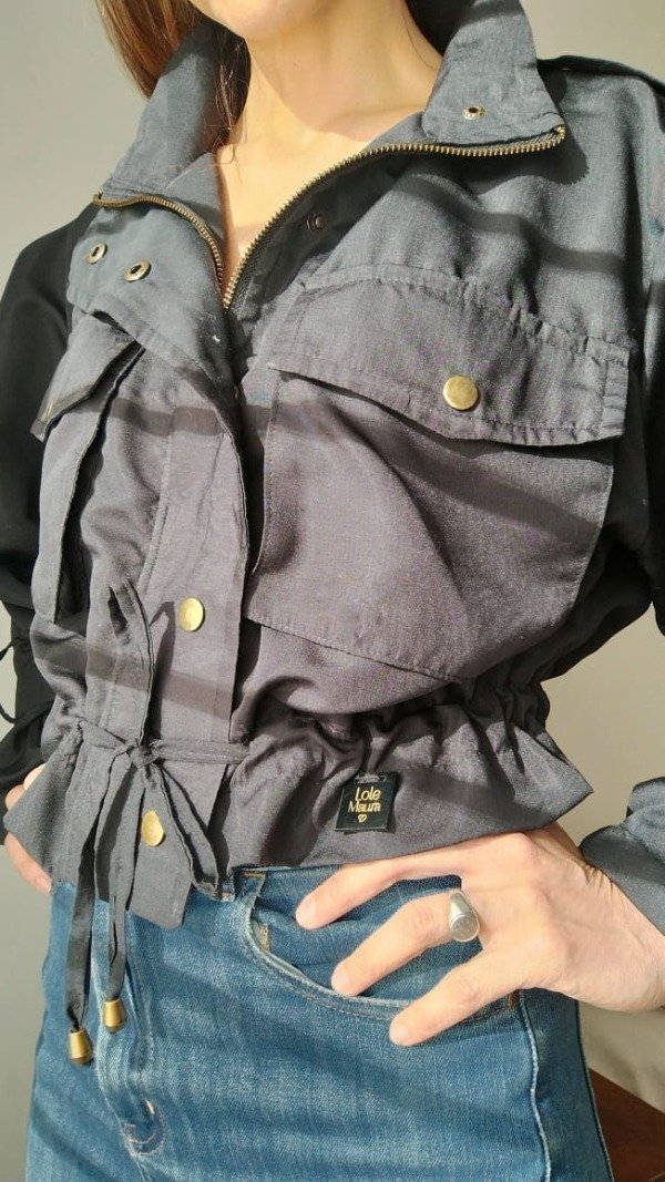 La chaqueta Suerte está confeccionada en una tela liviana con una caída sutil y estructura suave, ideal para acompañarte en los cambios de estación. Su diseño incluye bolsillos plaque con solapa, broches resorte metálicos y cierre empavonado, que aportan carácter y funcionalidad a una prenda versátil y canchera.